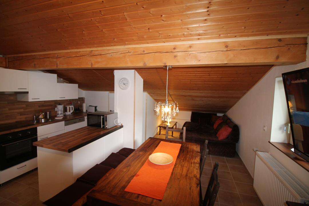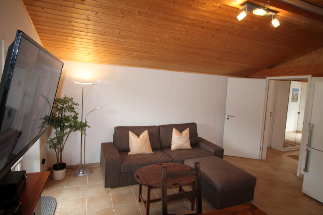 Der Wohnraum mit großem Südbalkon verfügt über eine offene Küche mit Essplatz, eine Sitzgruppe und eine „Kuschelecke“ zum Chillen oder Schlafen. Es gibt ein Schlafzimmer mit Doppelbett und ein Schlafzimmer mit 3 Betten unter einer Dachschräge, sowie eine Dusche mit WC. In der Wohnung wird internationales Satellitenfernsehen bereitgestellt. Ein PKW-Abstellplatz steht den Gästen zur Verfügung.